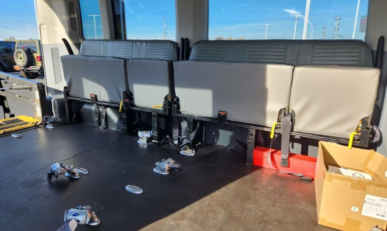 — Bussani Mobility Wheelchair Van Package! Room For Two Wheelchairs! Rear-Entry BraunAbility Power Wheelchair Lift – 800 lb. Lift Capacity – Handheld Lift Controller – 6 Passenger Flip-Up Vinyl Bench Seats – Heavy Duty Vinyl Flooring – Q’Straint Retractable Tie-Down Straps – Wall-Mounted Shoulder Seatbelt Mounting Track – Running Board – AND MORE!