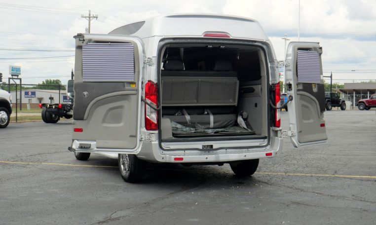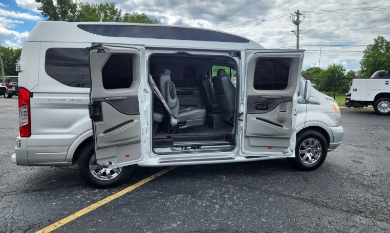 7 Passenger Explorer Vans Conversion Van! Navigation – High-Top Raised Roof w/ Glass Vista Side Windows – Painted Running Boards – Premium Leather Seating – Power/Heated Front Captain Chairs – Swivel/Quick-Release 2nd Row Captain Chairs – Power 3-Section Sofa/Bed – 29-Inch HDTV – Blu-ray/DVD Player – Surround Sound Speakers – Rear 120V AC Power Outlet – Remote HDMI Input – USB Charge Ports – Power/Heated Mirrors – Lane Keep Assist – Rain-Sensing Wipers – Rear Parking Camera/Sensors – Touchscreen Radio Display – Bluetooth For Phone – Front/Rear Climate Control – Center Console – Rear Indirect Accent Lighting – Reading Lights – Rear Window Shades – Wood Grain Interior Trim – Leather-Wrapped Steering Wheel – 16-Inch Chrome Wheels – Automatic Headlamps – AND MORE! Visit WWW.SHERRYVANS.COM to see more pictures and a detailed HD video of this custom Ingot Silver Metallic 2017 Ford Transit T-150 130WB Luxury Passenger Van for sale in Piqua, Ohio. Do you know that we offer competitive financing options and can assist with delivery? These are only some of the ways Paul Sherry goes above and beyond! *See Dealer To Confirm Specific Equipment*
