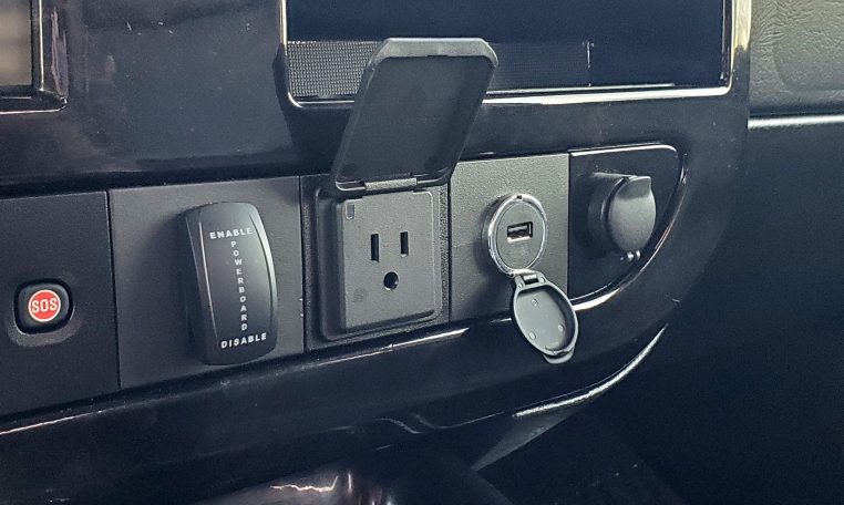 - Engine Cover Console with Swing-Out Storage Bin