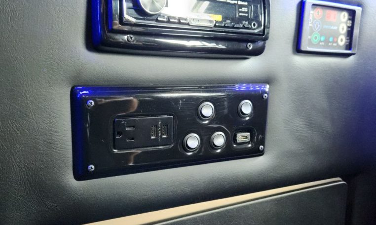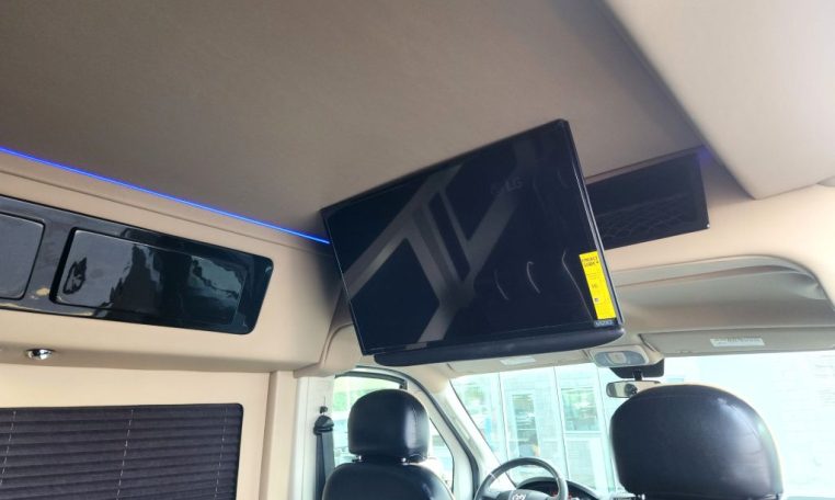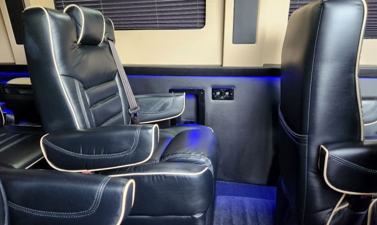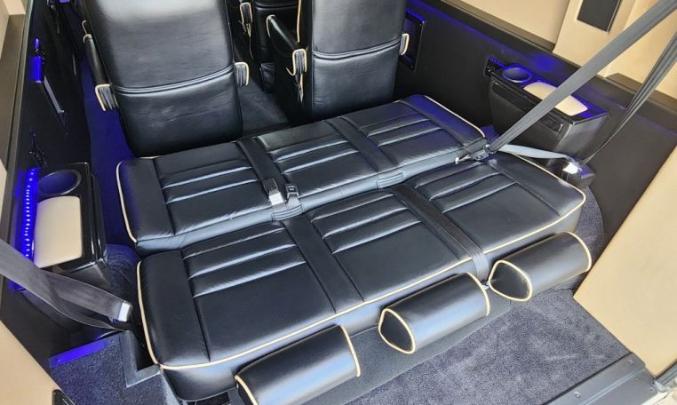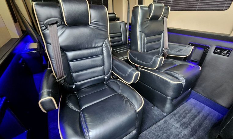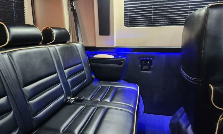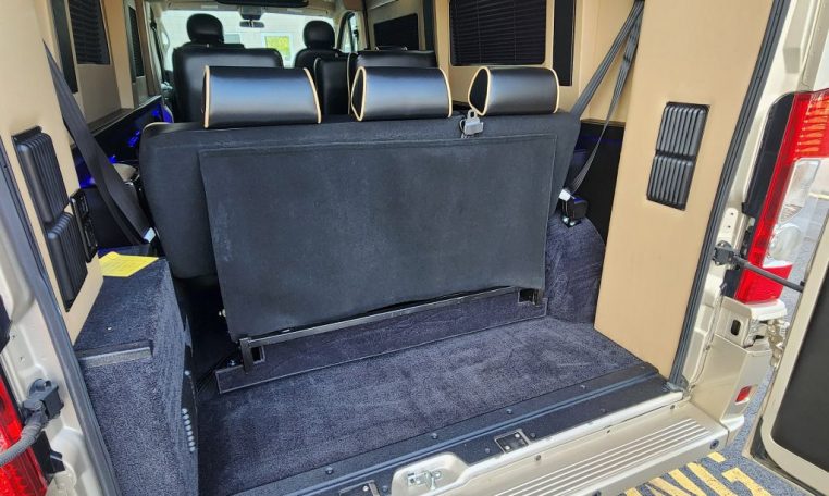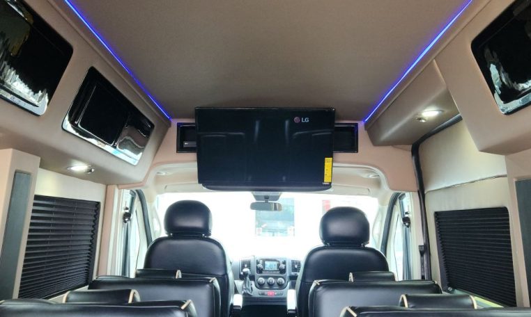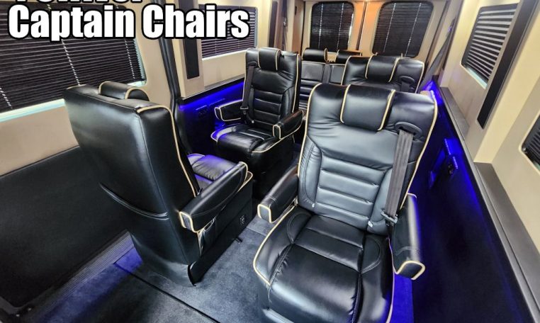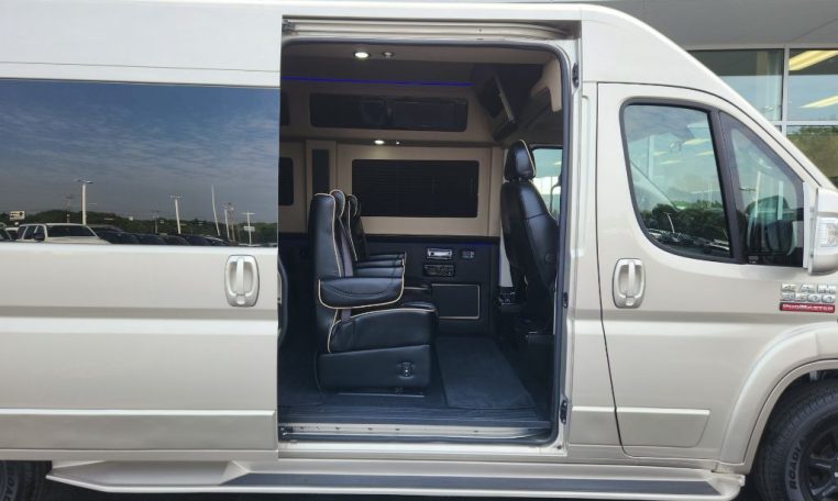 — Sherry Vans 9 Passenger Conversion! Stand Up Inside – 76-Inch Interior Height! Premium Leather Seating – Swivel 2nd/3rd Row Captain Chairs w/ Power Recline – LATCH Child Seat Anchors in Captain Chairs – 2-Section Manual-Folding Sofa/Bed – 32-Inch Smart HDTV – Smart Blu-Ray/DVD Player – Premium Speakers Throughout – Rear 110V AC Power Outlet – Rear USB Charge Ports – Remote HDMI Input For TV – Automatic Rear Climate Control w/ Adjustable Vents – Premium Deep Pile Carpeting w/ Floor Mats – Sound/Heat Insulation – Rear Privacy Window Shades – Indirect LED Accent Lighting – LED Reading Lights – Painted Exterior Fascias/Trim – Painted Running Boards w/ Non-Slip Pads – AND MORE!