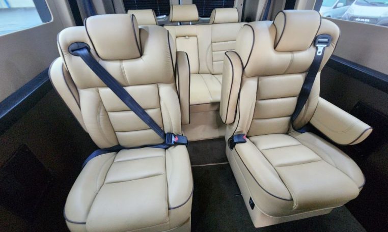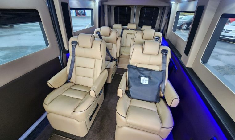 — Sherry Vans 9 Passenger Conversion! Stand Up Inside! — 76-Inch Interior Height! Premium Leather Seating – 2nd Row Captain Chairs w/ Power Foot Rests/Recline – 3rd Row Captain Chairs w/ Power Recline- 2-Section Power Sofa/Bed – 32-Inch Smart HDTV – Premium Speakers Throughout – Rear 110V AC Power Outlet – Rear USB Charge Ports – Remote HDMI Input For TV – Automatic Rear Climate Control w/ Adjustable Vents – Rear Radio w/ Bluetooth – Sound/Heat Insulation – Rear Privacy Window Shades – Indirect LED Accent Lighting – Reading Lights – Painted Exterior Fascias/Trim – Painted Running Boards w/ Non-Slip Pads – 18-Inch Painted Aftermarket Alloy Wheels – AND MORE!