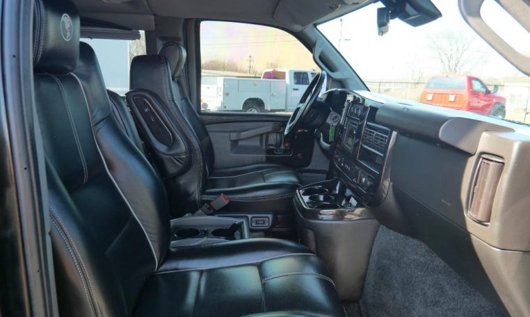 9 Passenger Explorer Vans Conversion Van! GPS Navigation! Remote Start – High-Top Raised Roof w/ Glass Vista Side Windows – Wrap-Around Ground Effects w/ Hidden Running Boards – Premium Leather Seating – Power/Heated Front Captain Chairs – Swivel/Quick-Release 2nd/3rd Row Captain Chairs – Power 3-Section Sofa/Bed – 29-Inch HDTV – Blu-Ray/DVD Player – Remote HDMI Input – Front/Rear 120V AC Power Outlets – USB Charge Ports – Power/Heated Mirrors – Lane Departure Warning – Blind Spot Monitoring – Rear Parking Camera/Sensors – Touchscreen Radio Display – Auxiliary Stereo Input – Satellite Radio – Bluetooth For Phone – Front/Rear Climate Control – Chevrolet 4G LTE Wi-Fi Hotspot – Rear Accent Lighting – Rear Window Shades – Center Console Cooler – 20-Inch Premium Painted Alloy Wheels – Towing Receiver – Chrome Grille Insert – Automatic Headlamps – LED Driving Lights – Clean AutoCheck History Report – AND MORE! Visit WWW.SHERRYVANS.COM to see more pictures and a detailed HD video of this custom Onyx Black 2019 Chevrolet Express Conversion Van for sale in Piqua, Ohio. Did you know that we deliver? These are only some of the ways Paul Sherry goes above and beyond! *See Dealer For Specific Equipment*
