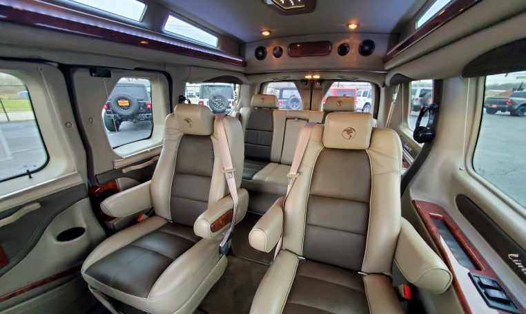 7 Passenger Explorer Vans Conversion Van! 1 Owner! Navigation – High-Top Raised Roof w/ Glass Vista Side Windows – Power Running Boards – Premium Leather Seating – Power/Heated Front Captain Chairs – Swivel/Quick-Release 2nd/3rd Row Captain Chairs – Power 3-Section Sofa/Bed – 29-Inch HDTV – Blu-ray/DVD Player – Surround Sound Speakers – Rear 120V AC Power Outlets – Remote HDMI Input – USB Charge Ports – Power/Heated Mirrors – Lane Keep Assist – Rain-Sensing Wipers – Rear Parking Camera/Sensors – Touchscreen Radio Display – Bluetooth For Phone – Front/Rear Climate Control – Center Console – Rear Indirect Accent Lighting – Reading Lights – Rear Window Shades – Wood Grain Interior Trim – Leather-Wrapped Steering Wheel – 16-Inch Chrome Wheels – Automatic Headlamps – Clean AutoCheck History Report – AND MORE! Visit WWW.SHERRYVANS.COM to see more pictures and a detailed HD video of this custom White Gold Metallic 2019 Ford Transit T-150 130WB Luxury Passenger Van for sale in Piqua, Ohio. Do you know that we offer competitive financing options and can assist with delivery? These are only some of the ways Paul Sherry goes above and beyond! *See Dealer To Confirm Specific Equipment*