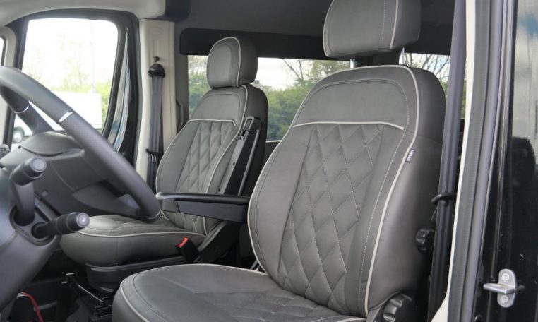 Front Seating: Premium Diamond-Pleated Leather Captain Chairs with Heat & Adjustable Armrest