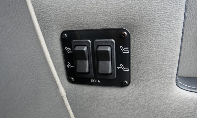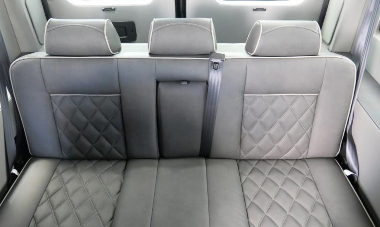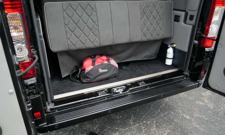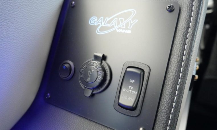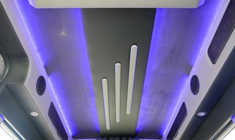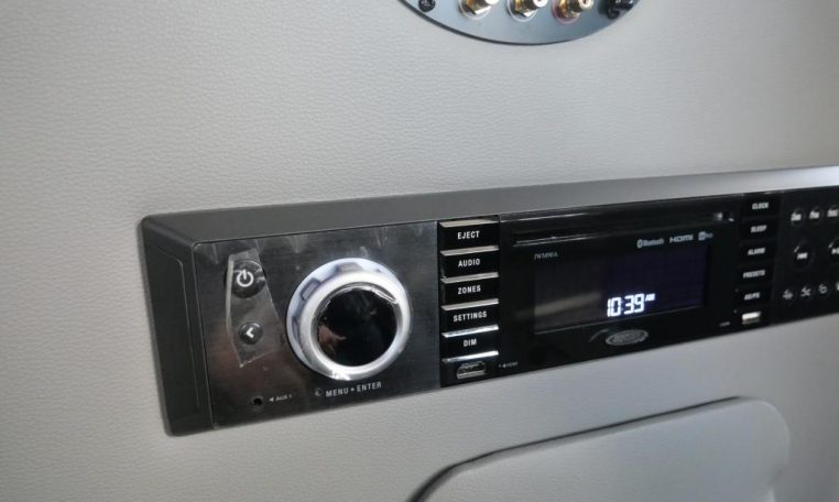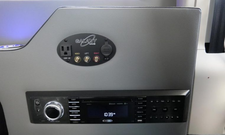 Rear Entertainment: Power Flip-Down 32″ HDTV, Blu-ray/DVD Player, Rear Stereo, Rockford Fosgate Speakers, (4) 110V AC Power Outlets, Remote HDMI Input, LED Indirect Accent and Mood Lighting, LED Reading Lights
