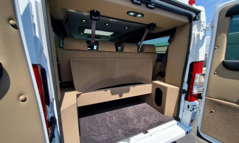 — BraunAbility UVL Power Wheelchair Lift – Flat Steel Flooring Coated w/ Heavy Duty Bed Liner – 4-Point Ratcheting Tie-Down Straps – Ultra Plush Rear Bench Seat – Front/Rear Climate Control – Rear Power Sofa/Bed – Soft-Touch Interior Walls/Trim – Interior Wall/Ceiling Insulation – 15-Inch Flip-Down TV Monitor – DVD Player – Wireless Headphones – Skylight – Sidewall Storage Compartment – Cupholders – Privacy Glass – Rear Window Shades – LED Interior Lighting – Painted Exterior Trim – Full-Length Running Boards – AND MORE!