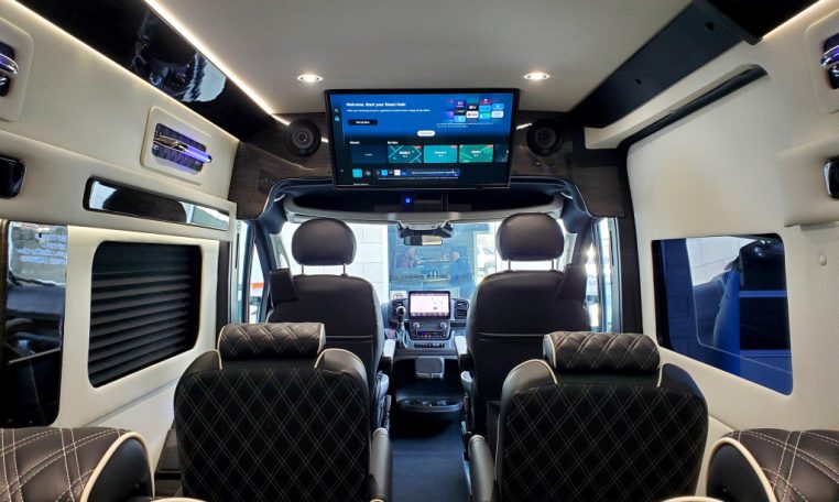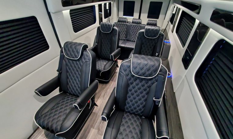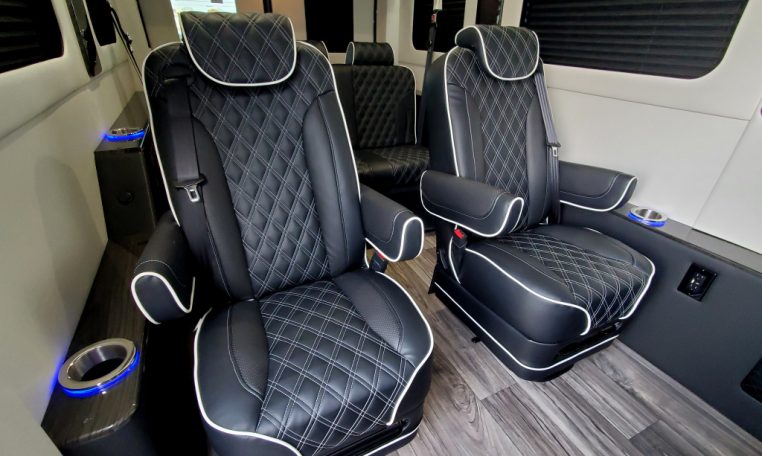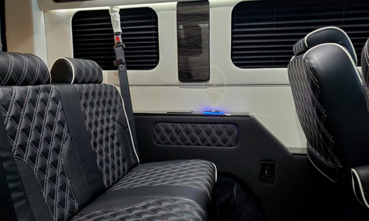 — BRAND NEW 2025 Midwest Automotive Designs 9 Passenger Luxury Conversion! Stand Up Inside–76-Inch Interior Height! Premium Diamond-Stitched Leather Seating – Quick-Release/Swivel 2nd/3rd Row Captain Chairs w/ Memory Foam – 2-Section Power Sofa/Bed – 32-Inch Smart HDTV – Remote HDMI TV Input – TV Antenna – Firefly Control System w/ 4 Touchscreen Displays – Rear Touchscreen Alpine Radio – Premium Alpine Speakers Throughout w/ Subwoofer – 1000 Watt Power Inverter – Deka Deep-Cycle Lithium Battery – Shore Power Input – 3 110V AC Power Outlets w/ USB Charge Ports – Premier Products Dual-Compressor Rear Climate Control System – Woodgrain Composite Flooring w/ Floor Mats – High-Gloss Genuine Wood Trim – Sound/Heat Insulation – Rear Privacy Window Shades – Indirect LED Accent Lighting – LED-Lit Assist Handles – LED Reading Lights – Stainless Steel Cupholders – Painted Exterior Fascias/Trim – Painted Running Boards w/ Non-Slip Pads – AND MORE!
