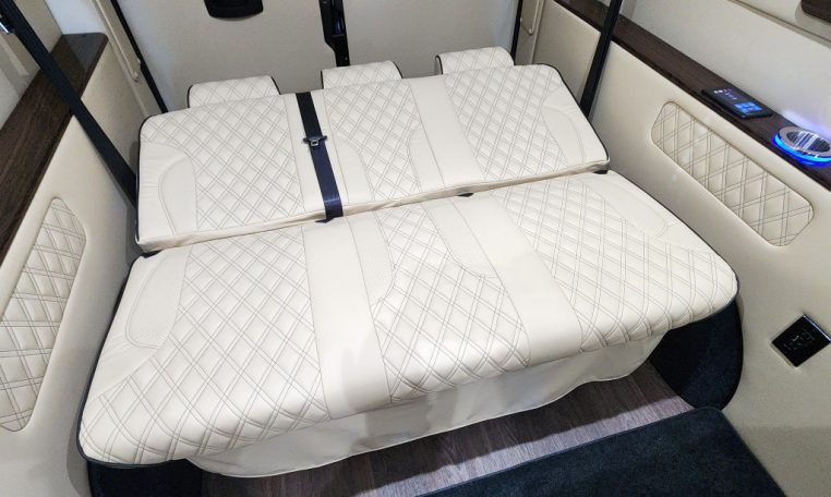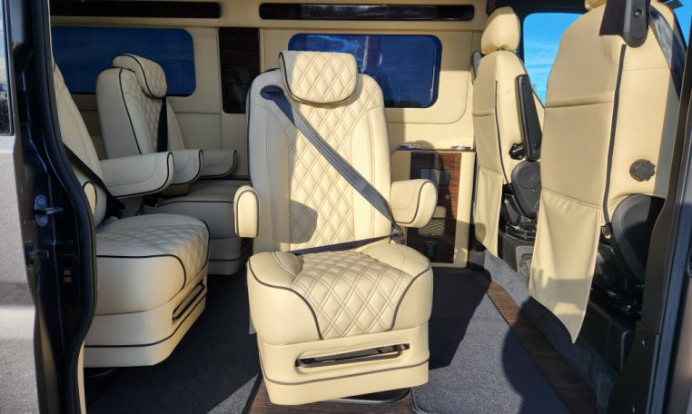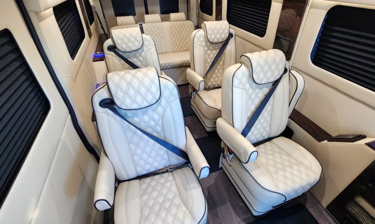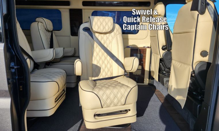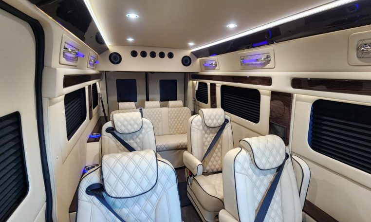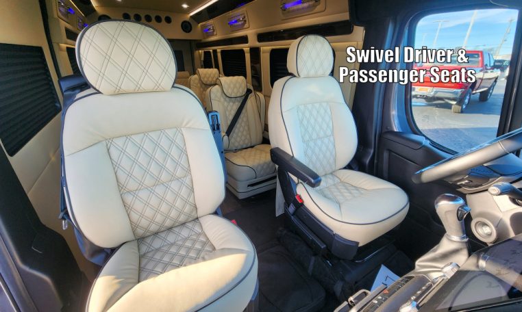 — BRAND NEW 2025 Midwest Automotive Designs 9 Passenger Luxury Conversion! Stand Up Inside–76-Inch Interior Height! Premium Diamond-Stitched Leather Seating – Quick-Release/Swivel 2nd/3rd Row Captain Chairs w/ Memory Foam – 2-Section Power Sofa/Bed – 32-Inch Smart HDTV – Remote HDMI TV Input – TV Antenna – Firefly Control System w/ 4 Touchscreen Displays – Rear Touchscreen Alpine Radio – Premium Alpine Speakers Throughout w/ Subwoofer – 1000 Watt Power Inverter – Deka Deep-Cycle Lithium Battery – Shore Power Input – 3 110V AC Power Outlets w/ USB Charge Ports – Premier Products Dual-Compressor Rear Climate Control System – Woodgrain Composite Flooring w/ Floor Mats – High-Gloss Genuine Wood Trim – Sound/Heat Insulation – Rear Privacy Window Shades – Indirect LED Accent Lighting – LED-Lit Assist Handles – LED Reading Lights – Stainless Steel Cupholders – Painted Exterior Fascias/Trim – Painted Running Boards w/ Non-Slip Pads – AND MORE!