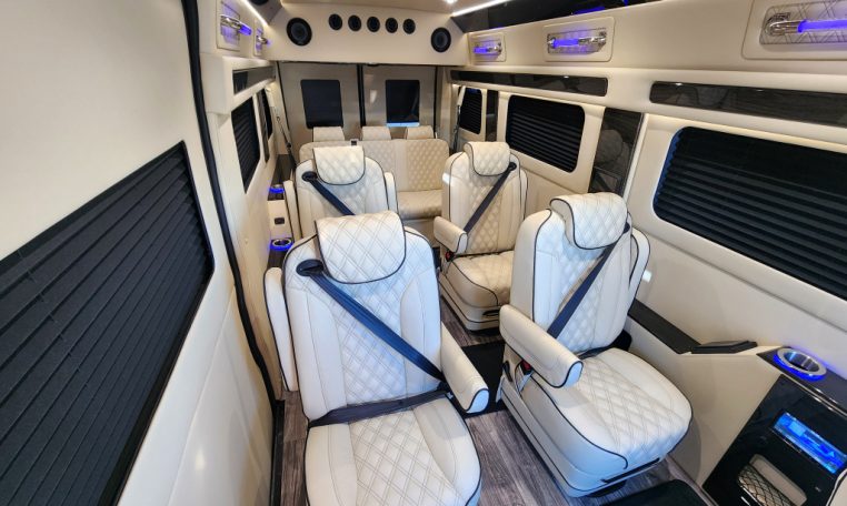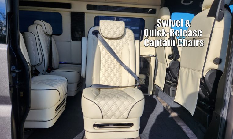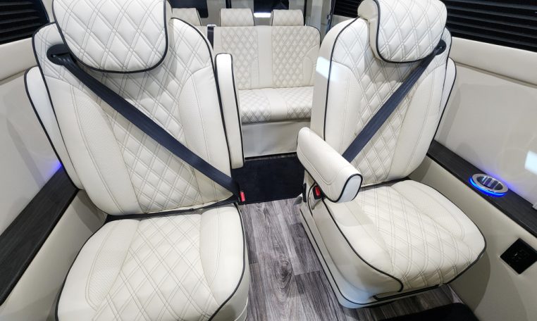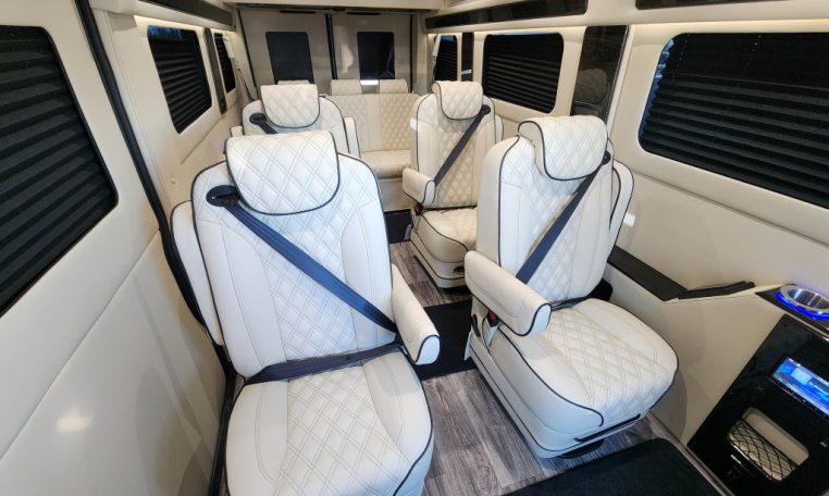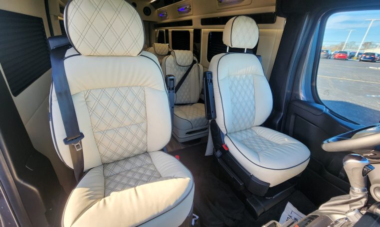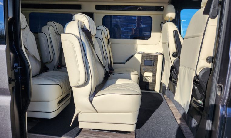 — BRAND NEW 2025 Midwest Automotive Designs 9 Passenger Luxury Conversion! Stand Up Inside–76-Inch Interior Height! Premium Diamond-Stitched Leather Seating – Quick-Release/Swivel 2nd/3rd Row Captain Chairs w/ Memory Foam – 2-Section Power Sofa/Bed – 32-Inch Smart HDTV – Remote HDMI TV Input – TV Antenna – Firefly Control System w/ 4 Touchscreen Displays – Rear Touchscreen Alpine Radio – Premium Alpine Speakers Throughout w/ Subwoofer – 1000 Watt Power Inverter – Deka Deep-Cycle Lithium Battery – Shore Power Input – 3 110V AC Power Outlets w/ USB Charge Ports – Premier Products Dual-Compressor Rear Climate Control System – Woodgrain Composite Flooring w/ Floor Mats – High-Gloss Genuine Wood Trim – Sound/Heat Insulation – Rear Privacy Window Shades – Indirect LED Accent Lighting – LED-Lit Assist Handles – LED Reading Lights – Stainless Steel Cupholders – Painted Exterior Fascias/Trim – Painted Running Boards w/ Non-Slip Pads – AND MORE!