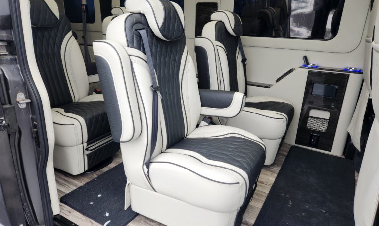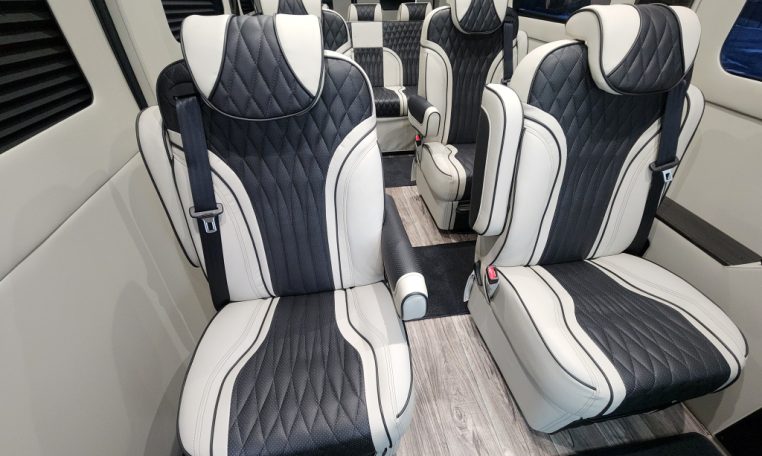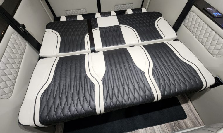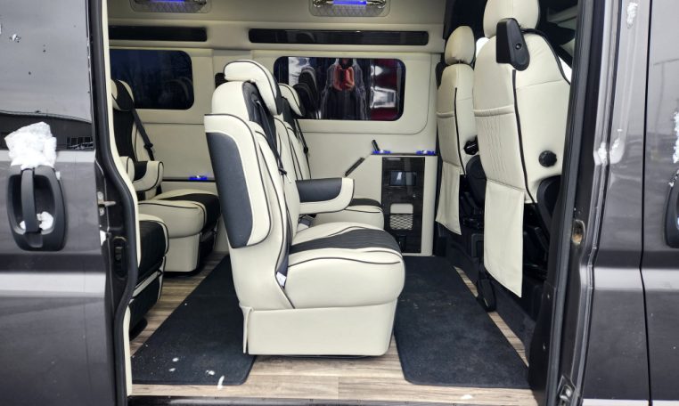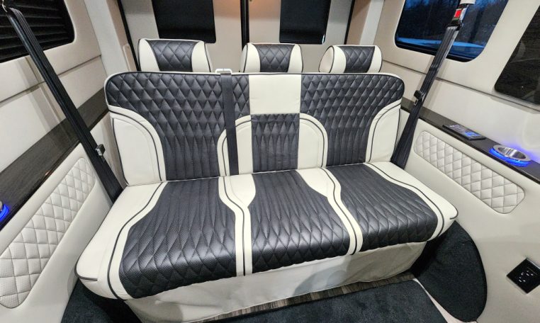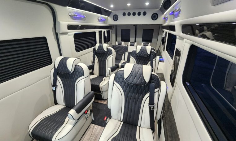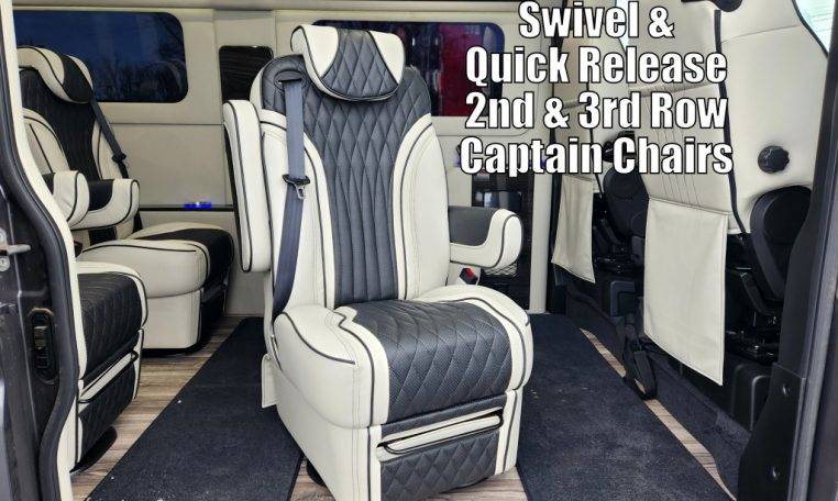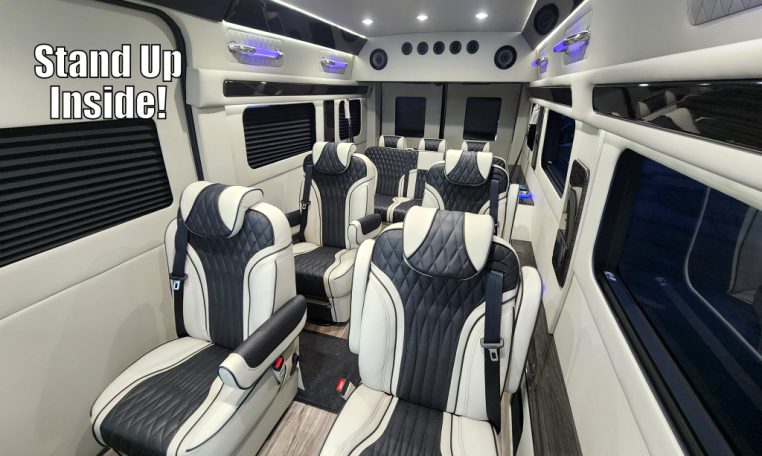 — BRAND NEW 2025 Midwest Automotive Designs 9 Passenger Luxury Conversion! Stand Up Inside–76-Inch Interior Height! Premium Diamond-Stitched Leather Seating – Quick-Release/Swivel 2nd/3rd Row Captain Chairs w/ Memory Foam – 2-Section Power Sofa/Bed – 32-Inch Smart HDTV – Remote HDMI TV Input – TV Antenna – Firefly Control System w/ 4 Touchscreen Displays – Rear Touchscreen Alpine Radio – Premium Alpine Speakers Throughout w/ Subwoofer – 1000 Watt Power Inverter – Deka Deep-Cycle Lithium Battery – Shore Power Input – 3 110V AC Power Outlets w/ USB Charge Ports – Premier Products Dual-Compressor Rear Climate Control System – Woodgrain Composite Flooring w/ Floor Mats – High-Gloss Genuine Wood Trim – Sound/Heat Insulation – Rear Privacy Window Shades – Indirect LED Accent Lighting – LED-Lit Assist Handles – LED Reading Lights – Stainless Steel Cupholders – Painted Exterior Fascias/Trim – Painted Running Boards w/ Non-Slip Pads – AND MORE!