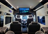 — BRAND NEW 2025 Midwest Automotive Designs 9 Passenger Luxury Conversion! Stand Up Inside–76-Inch Interior Height! Premium Diamond-Stitched Leather Seating – Quick-Release/Swivel 2nd/3rd Row Captain Chairs w/ Memory Foam – 2-Section Power Sofa/Bed – 32-Inch Smart HDTV – Remote HDMI TV Input – TV Antenna – Firefly Control System w/ 4 Touchscreen Displays – Rear Touchscreen Alpine Radio – Premium Alpine Speakers Throughout w/ Subwoofer – 1000 Watt Power Inverter – Deka Deep-Cycle Lithium Battery – Shore Power Input – 3 110V AC Power Outlets w/ USB Charge Ports – Premier Products Dual-Compressor Rear Climate Control System – Woodgrain Composite Flooring w/ Floor Mats – High-Gloss Genuine Wood Trim – Sound/Heat Insulation – Rear Privacy Window Shades – Indirect LED Accent Lighting – LED-Lit Assist Handles – LED Reading Lights – Stainless Steel Cupholders – Painted Exterior Fascias/Trim – Painted Running Boards w/ Non-Slip Pads – AND MORE!