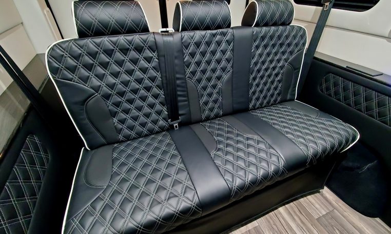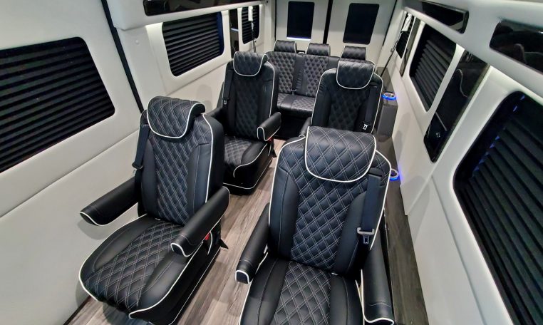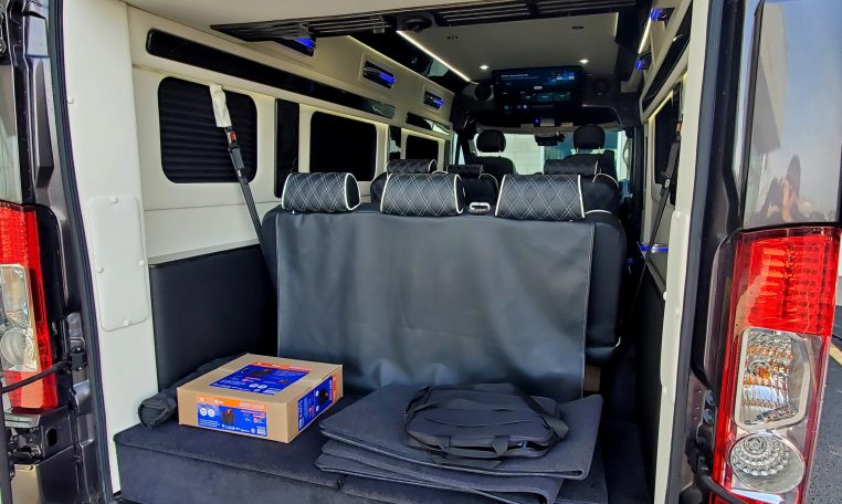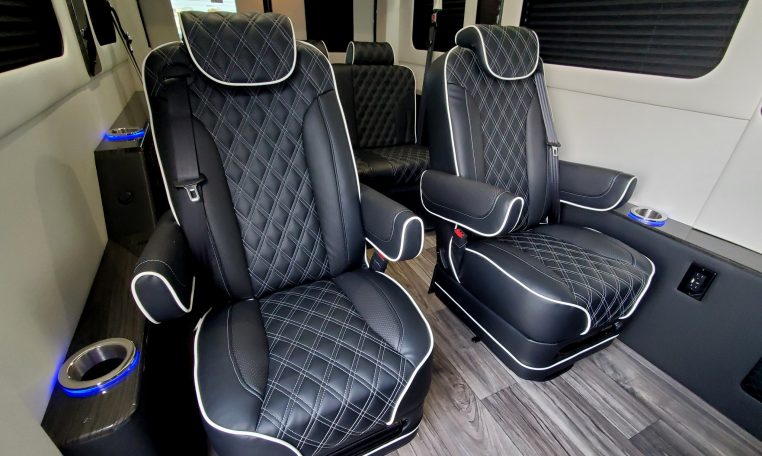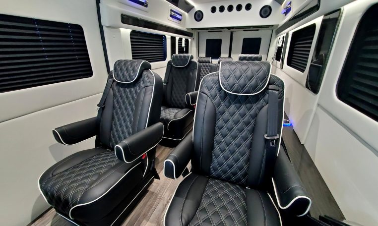 — BRAND NEW 2025 Midwest Automotive Designs 9 Passenger Luxury Conversion! Stand Up Inside–76-Inch Interior Height! Premium Diamond-Stitched Leather Seating – Quick-Release/Swivel 2nd/3rd Row Captain Chairs w/ Memory Foam – 2-Section Power Sofa/Bed – 32-Inch Smart HDTV – Remote HDMI TV Input – TV Antenna – Firefly Control System w/ 4 Touchscreen Displays – Rear Touchscreen Alpine Radio – Premium Alpine Speakers Throughout w/ Subwoofer – 1000 Watt Power Inverter – Deka Deep-Cycle Lithium Battery – Shore Power Input – 3 110V AC Power Outlets w/ USB Charge Ports – Premier Products Dual-Compressor Rear Climate Control System – Woodgrain Composite Flooring w/ Floor Mats – High-Gloss Genuine Wood Trim – Sound/Heat Insulation – Rear Privacy Window Shades – Indirect LED Accent Lighting – LED-Lit Assist Handles – LED Reading Lights – Stainless Steel Cupholders – Painted Exterior Fascias/Trim – Painted Running Boards w/ Non-Slip Pads – AND MORE!
