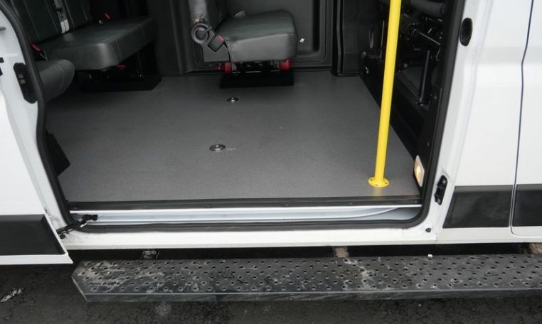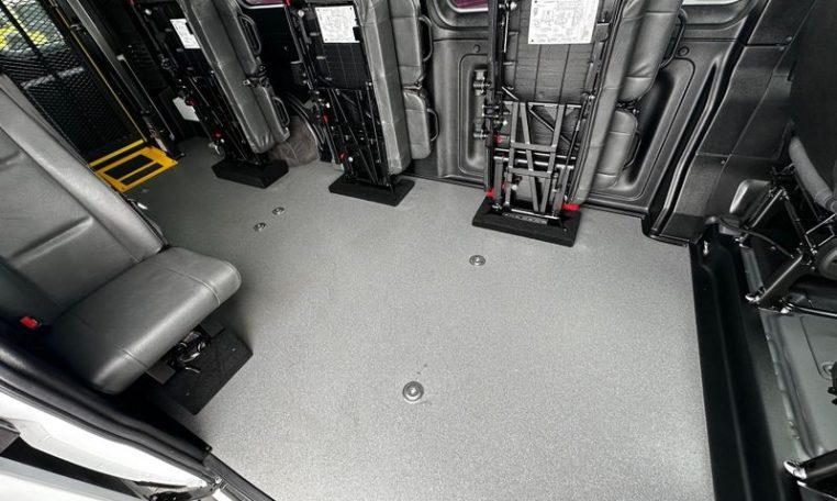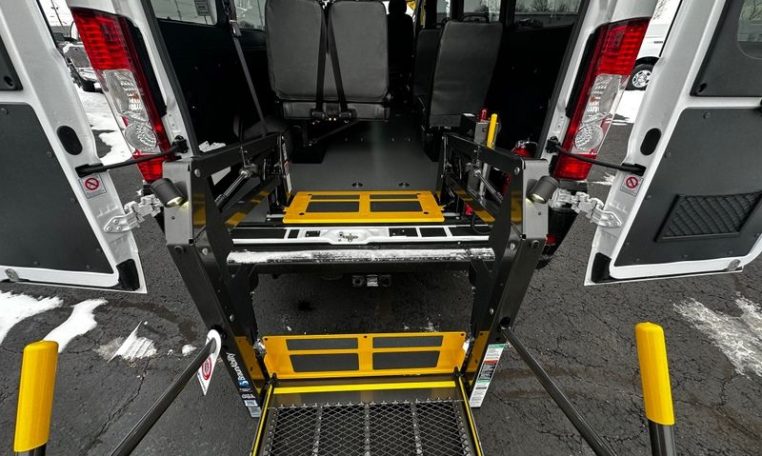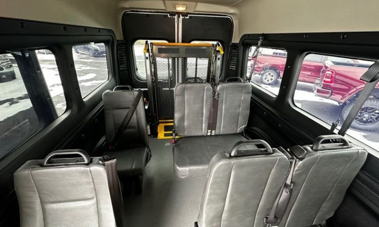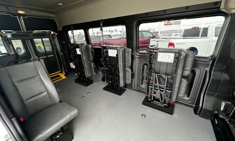 — Prime-Time Specialty Vehicles Med-Transit Mobility Transport Van! BraunAbility Century Power Dual-Post Wheelchair Lift – 800 lb Lift Capacity – Room For Up To 2 Wheelchairs – Retractable Tie-Down Straps – Multi-Position Shoulder Seatbelts – Flooring Securement System – 3 Foldaway GO-ES Double Passenger Seats – 2 Fixed Freedman GO-ES Single Passenger Seats – Front/Rear Climate Control – ABS Plastic Interior Trim – Sound/Temperature Insulation – LED Ceiling Lights – Power Coated Running Boards – Yellow Stainless Steel Grab Bar – Backup Beeper Alarm – First Aid Kit – Triangle Roadside Kit – ADA/FMVSS-Compliant – AND MORE!
