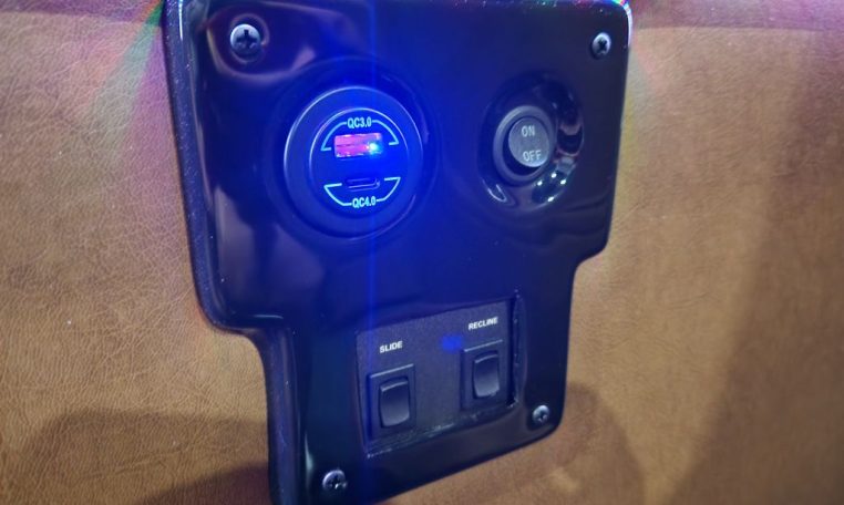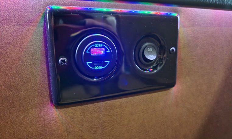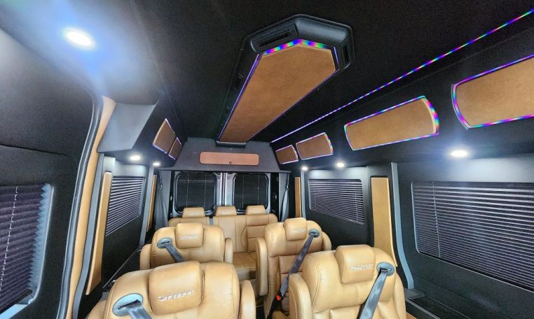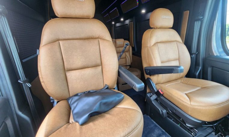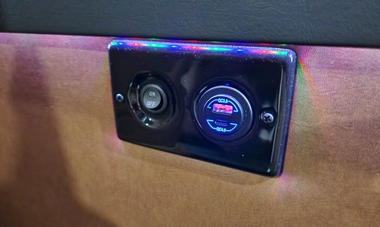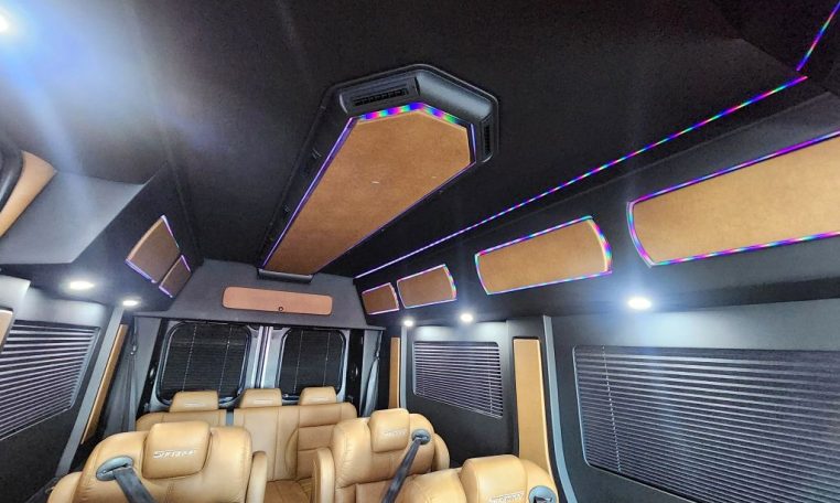 - Finishes & Lighting: Premium Carpet Flooring • Sound / Heat Insulation • Rear Privacy Window Shades • Indirect RGB LED Accent Lighting • LED Reading Lights • Stainless Steel Cupholders