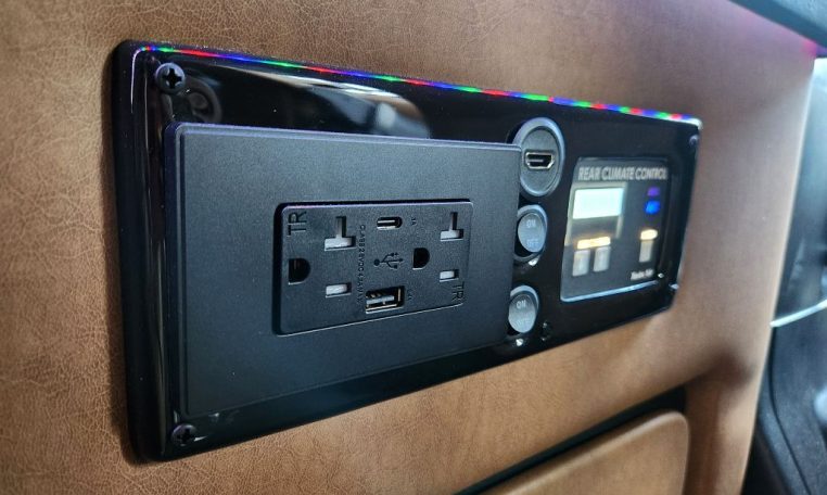 - Power & Climate: Rear 110V AC Power Outlet • Rear USB Charge Ports • Automatic Rear Climate Control with Adjustable Vents