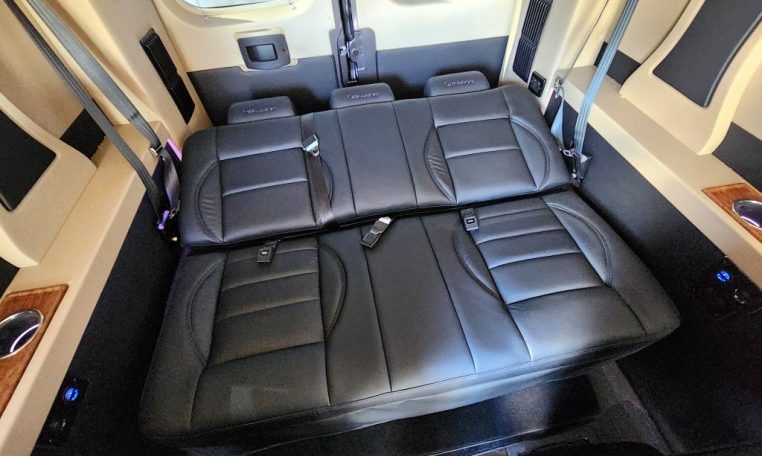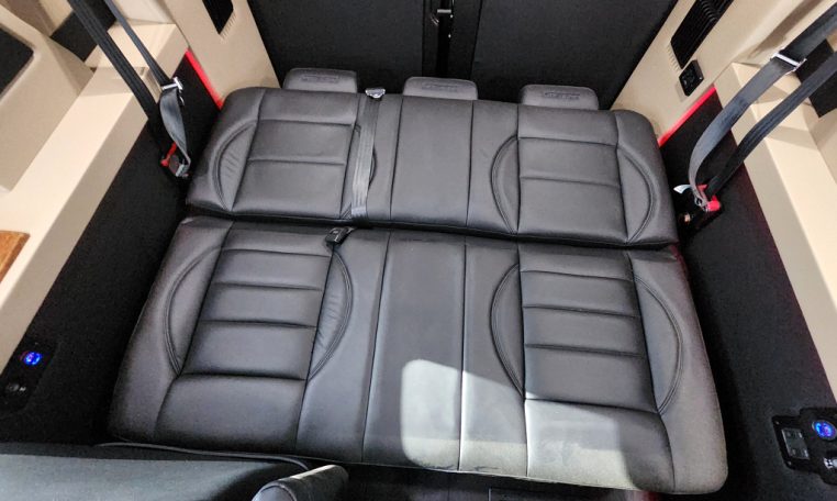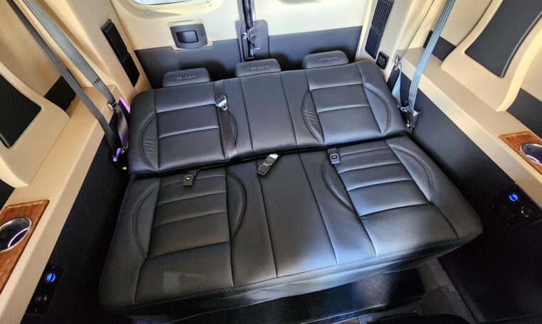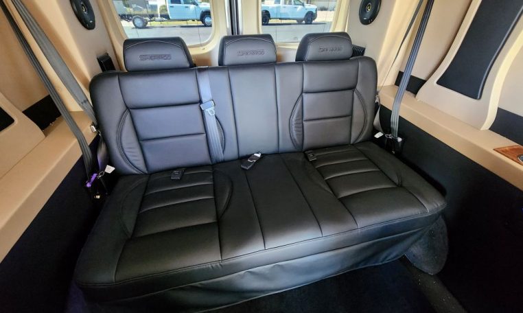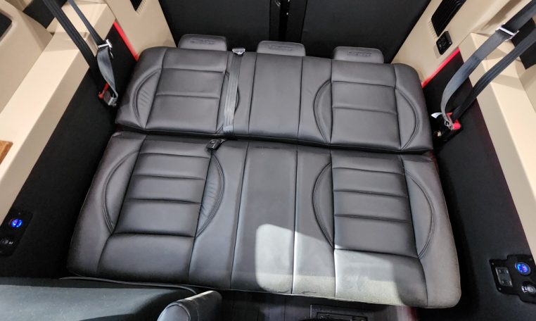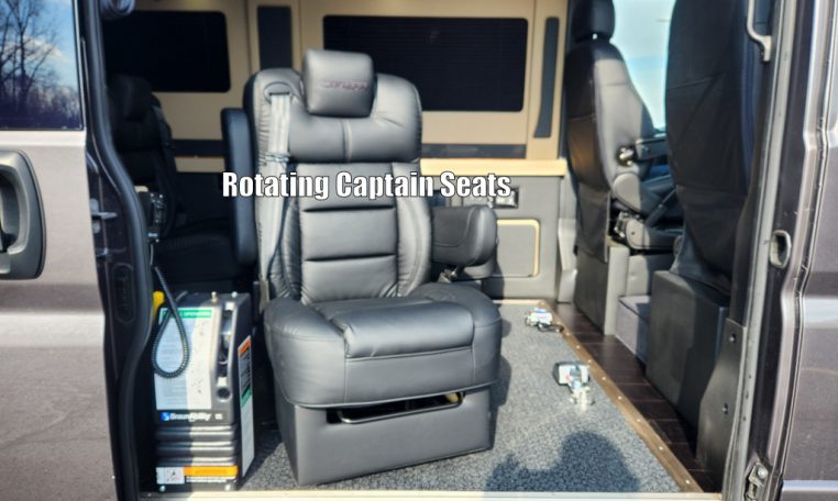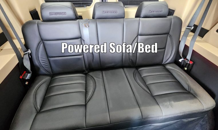 - Seating: Premium Leather Seating • Swivel / Quick-Release 2nd & 3rd Row Captain Chairs • 2-Section Power Sofa / Bed