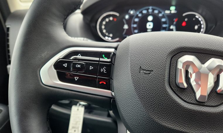 - Visit DriveUconnect.com; For More Info Call 800-643-2112; Integrated Voice Command with Bluetooth; Instrument Panel Bright Bezels; 6-Way Manual Adjust Front Passenger Seat; Front LED Fog Lamps; Full Size Spare Tire; Security Alarm; Apple CarPlay; Remote Start System; Cowl Aesthetic Cover; Disassociated Touchscreen Display; Wireless Charging Pad; 12V Rear Auxiliary Power Outlet; 115V Auxiliary Power Outlet; Intelligent Speed Assist (ISA); Digital Rearview Mirror with Autodim; 100 Amp Battery; Ambient LED Interior Lighting; Rain Sensitive Windshield Wipers; Integrated Center Stack Radio; Connectivity - US/Canada; Rear Cargo LED Lamp; Chrome Front Grille; GPS Navigation; 4G LTE Wi-Fi Hot Spot; Traffic Sign Information; GPS Antenna Input; SiriusXM with 360L; Global Telematics Box Module; Connected Travel and Traffic Services; LED Reflector Headlamps; Uconnect 5 Nav with 10.1" Display Radio; 10.1" Touchscreen Display; Adaptive Cruise Control with Stop and Go; HD Radio; Automatic Headlamps; 220 Amp Alternator; Passive Entry; Auto High Beam Headlamp Control; Cluster 7" TFT Color Display; 6-Way Manual Adjust Driver Seat; LED Daytime Running Headlamps; Power-Folding Mirrors; Cargo Storage Headliner; Lane Departure Warning Plus; ParkSense Front/rear Park Assist System