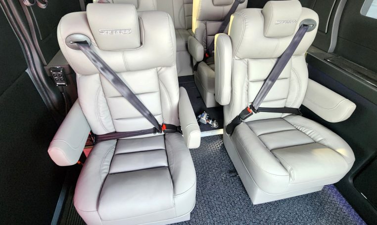 — Sherrod Vans 9 Passenger Conversion! Stand Up Inside – 76-Inch Interior Height! Premium Leather Seating – Swivel/Quick-Release 2nd/3rd Row Captain Chairs – 2-Section Power Sofa/Bed – 32-Inch Smart HDTV – Premium Speakers Throughout – Wireless Headphones – Rear 110V AC Power Outlet – Rear USB Charge Ports – Remote HDMI Input For TV – Automatic Rear Climate Control w/ Adjustable Vents – Premium Vinyl Flooring – Sound/Heat Insulation – Rear Privacy Window Shades – Indirect RGB LED Accent Lighting – LED Reading Lights – Stainless Steel Cupholders – Painted Exterior Fascias/Trim – Painted Running Boards w/ Non-Slip Pads – AND MORE!