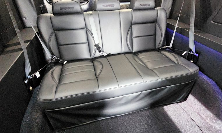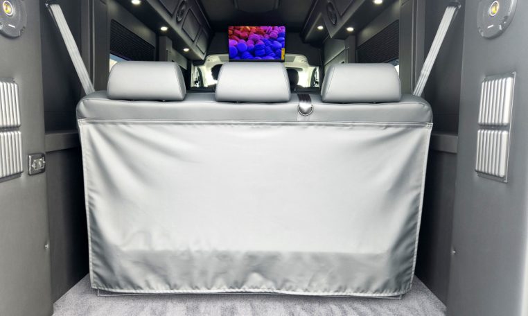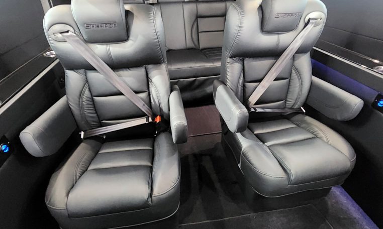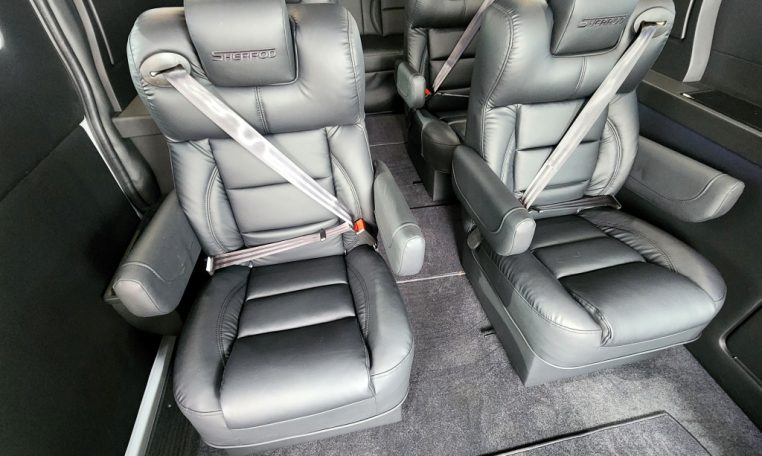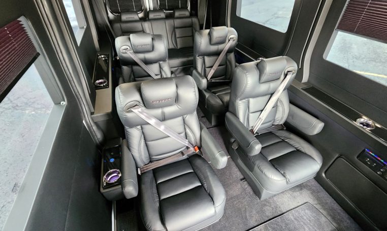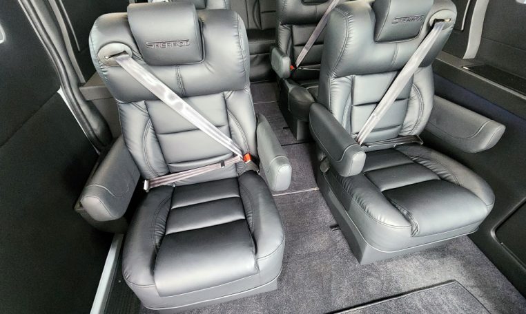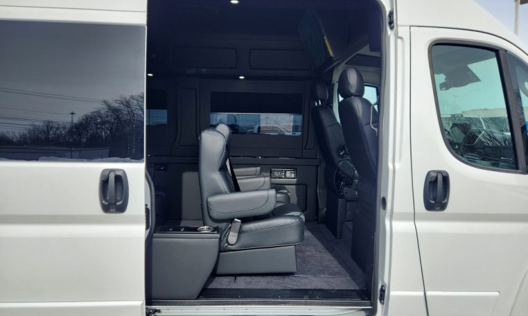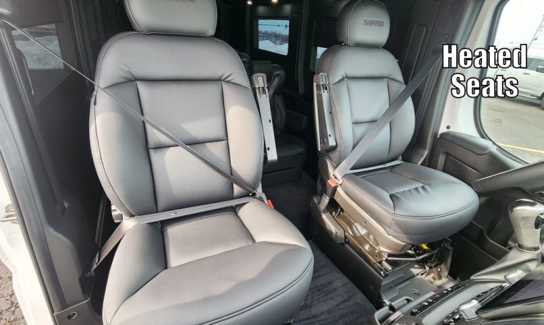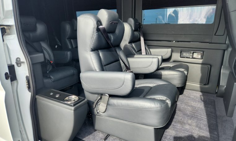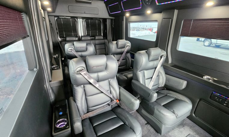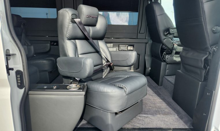 — Sherrod Vans 9 Passenger Luxury Conversion Package! Stand Up Inside – 76-Inch Interior Height! Premium Leather Seating – Swivel/Quick-Release 2nd/3rd Row Captain Chairs – 2-Section Power Sofa/Bed – 32-Inch Smart HDTV – Premium Speakers Throughout – Wireless Headphones – Rear 110V AC Power Outlet – Rear USB Charge Ports – Remote HDMI Input For TV – Automatic Rear Climate Control w/ Adjustable Vents – Thick Pile Carpet – Sound/Heat Insulation – Rear Privacy Window Shades – Indirect RGB LED Accent Lighting – LED Reading Lights – Stainless Steel Cupholders – Painted Exterior Fascias/Trim – Painted Running Boards w/ Non-Slip Pads – AND MORE!