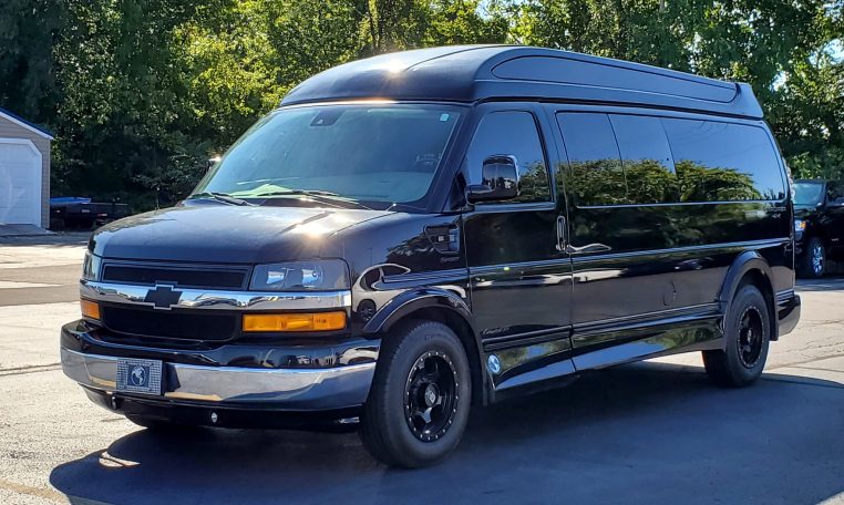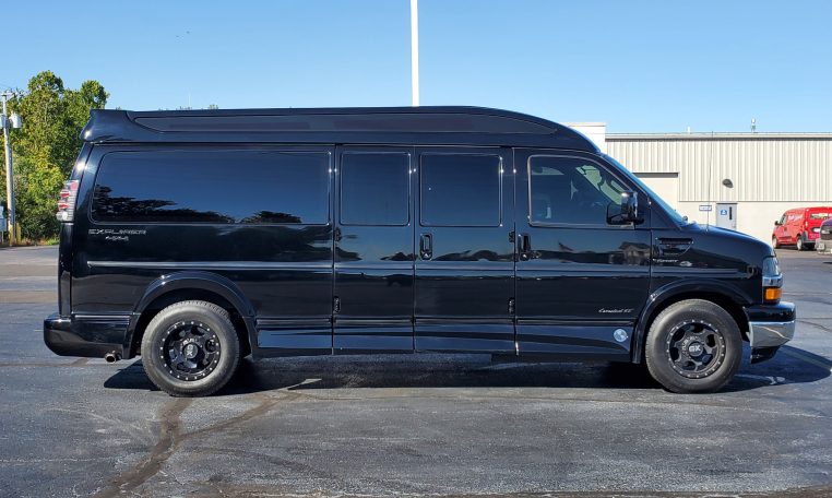 -- RARE FOUR WHEEL DRIVE! Newer Tires! Long-Wheelbase 7 Passenger Explorer Vans Conversion Van! Remote Start - Navigation - High-Top Raised Roof w/ Glass Vista Side Windows - Wrap-Around Ground Effects w/ Hidden Power Running Boards - Premium Two-Tone Leather Seating - Power/Heated Front Captain Chairs - Power-Reclining 2nd Captain Chairs w/ Footrests - Power 3-Section Sofa/Bed - 29-Inch HDTV - Blu-ray/DVD Player - Remote HDMI Input - Front/Rear 120V AC Power Outlets - USB Charge Ports - Power/Heated Mirrors - Head Up Display - Blind Spot Monitoring - Forward Collision Warning - Lane Departure Warning - Rear Parking Camera/Sensors - 6.5-Inch Touchscreen Radio Display - Bluetooth For Phone - Satellite Radio - CD Player - Front/Rear Climate Control - Rear Accent Lighting - Rear Window Shades - Center Console Cooler - Leather-Wrapped Steering Wheel - Premium Painted Alloy Wheels - Towing Receiver - Painted Mesh Grille Inserts - Automatic Headlamps - Projector Fog Lamps - Clean AutoCheck History Report - AND MORE! Visit WWW.SHERRYVANS.COM to see more pictures and a detailed HD video of this custom Black 2019 Chevrolet Express 2500 155WB High-Top 4WD Luxury Wheelchair Van for sale in Piqua, Ohio. Do you know that we offer competitive financing options and can assist with delivery? These are only some of the ways Paul Sherry goes above and beyond! *See Dealer To Confirm Specific Equipment*