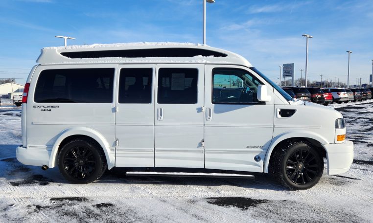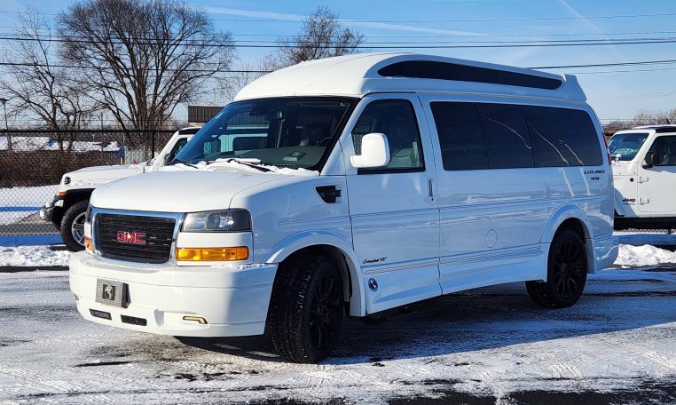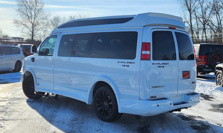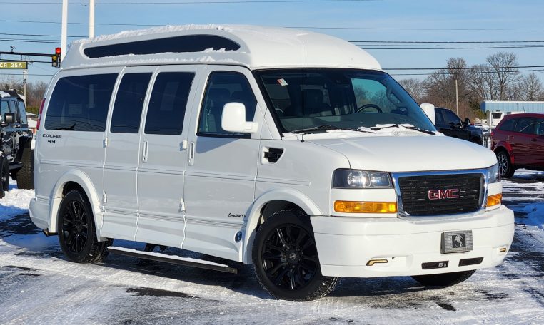 RARE FOUR WHEEL DRIVE! 7 Passenger Explorer Vans Conversion Van! Rear Sunroof – Remote Start – Navigation – High-Top Raised Roof w/ Glass Vista Side Windows – Wrap-Around Ground Effects w/ Hidden Power Running Boards – Premium Leather Seating – Power/Heated Front Captain Chairs – Swivel/Quick-Release 2nd Row Captain Chairs – Power 3-Section Sofa/Bed – 29-Inch HDTV – Apple TV – Blu-Ray/DVD Player – OnStar 4G Wi-Fi Hotspot – Remote HDMI Input – Front/Rear 120V AC Power Outlets – USB Charge Ports – Power/Heated Mirrors – Blind Spot Monitoring – Forward Collision Warning – Lane Change Alert – Rear Parking Camera/Sensors – 6.5-Inch Touchscreen Radio – Bluetooth For Phone – Satellite Radio – CD Player – Front/Rear Climate Control – Rear Accent Lighting – Rear Window Shades – Center Console Cooler – Illuminated Door Sill Plates – Leather-Wrapped Steering Wheel – 20-Inch Premium Painted Alloy Wheels – Towing Receiver – Painted Aluminum Grille Inserts – Automatic Headlamps – LED Driving Lights – Clean AutoCheck History Report – AND MORE! Visit WWW.SHERRYVANS.COM to see more pictures and a detailed HD video of this custom Summit White 2020 GMC Savana 2500 135WB High-Roof Luxury Passenger Van for sale in Piqua, Ohio. Do you know that we offer competitive financing options and can assist with delivery? These are only some of the ways Paul Sherry goes above and beyond! *See Dealer To Confirm Specific Equipment*