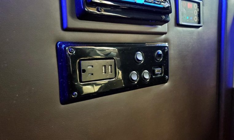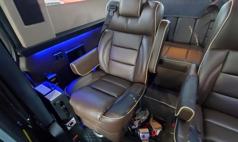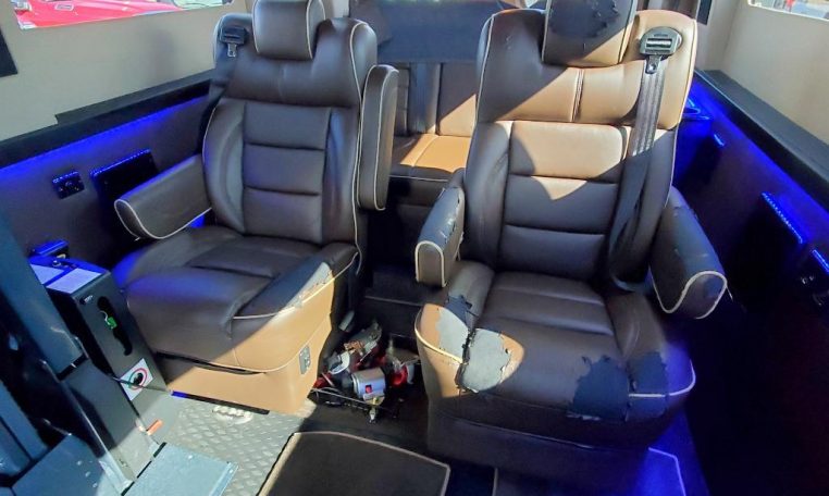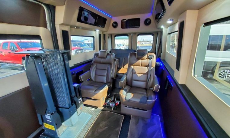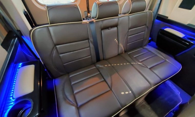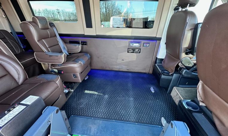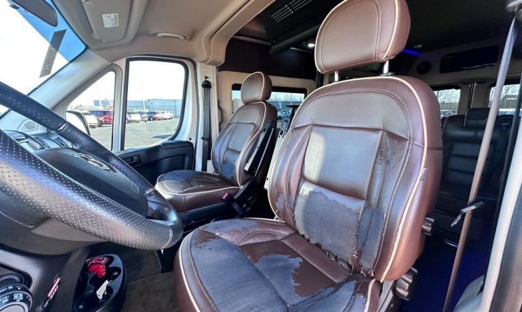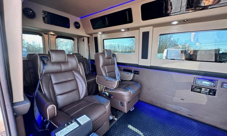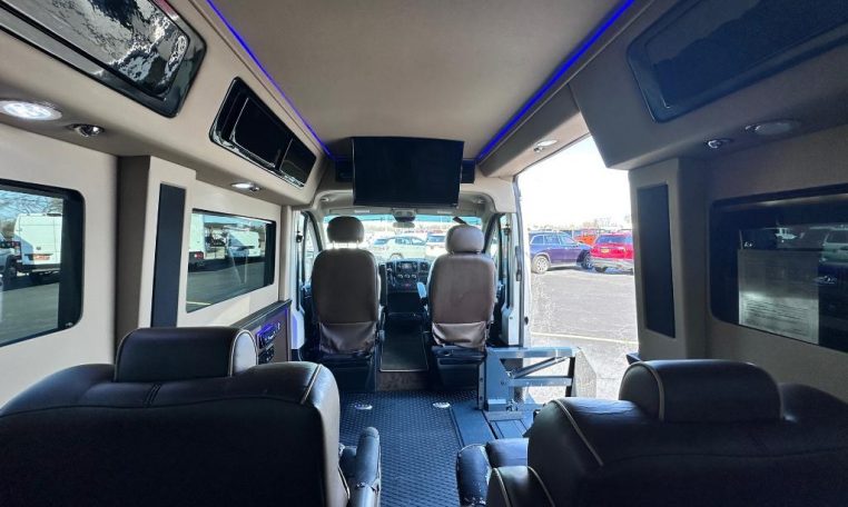 — Sherry Vans Conversion! Seating For 7 Passengers! Stand Up Inside – 76-Inch Interior Height! High-Top Roof w/ Overhead Storage – Premium Leather Seating – Swivel 2nd Row Captain Chairs – Child LATCH Seat Anchors in Captain Chairs – 2-Section Power Sofa/Bed – 32-Inch Smart HDTV – Smart Blu-Ray/DVD Player – Premium Speakers Throughout – Rear 110V AC Power Outlet – Rear USB Charge Ports – Remote HDMI Input For TV – Automatic Rear Climate Control w/ Adjustable Vents – Premium Deep Pile Carpeting w/ Floor Mats – Sound/Heat Insulation – Rear Privacy Window Shades – Indirect LED Accent Lighting – LED Reading Lights – Painted Exterior Fascias/Trim – AND MORE!